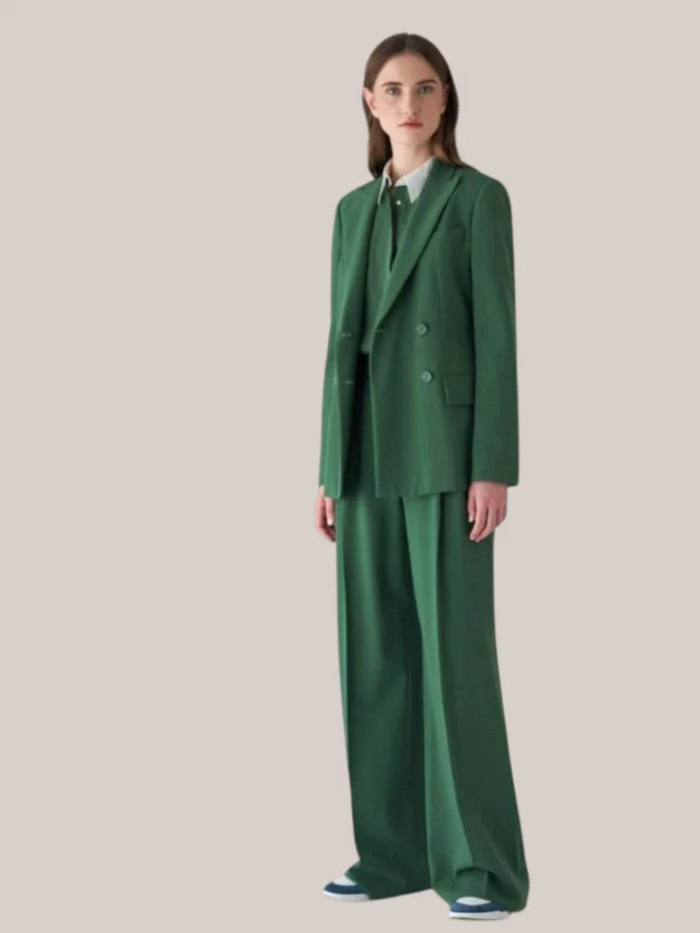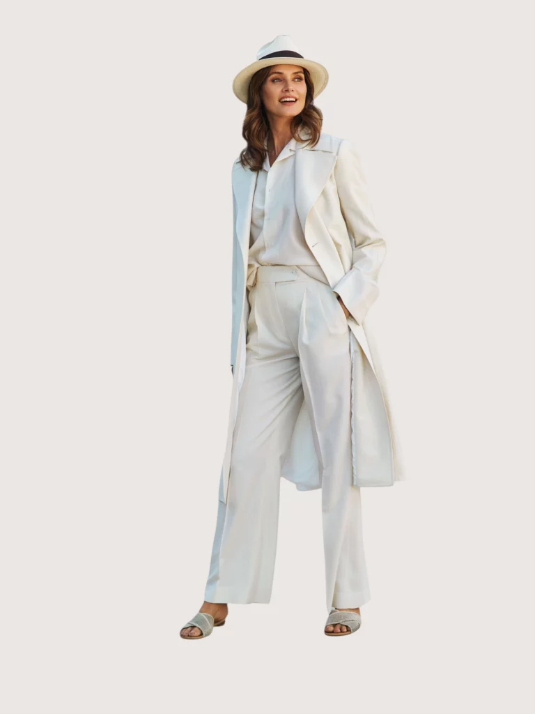 Een trouwpak voor de bruid kan op verschillende manieren worden samengesteld. Denk aan zachte tinten zoals ivoor en champagne voor een tijdloze uitstraling, of juist donkere kleuren voor een krachtig en modern effect.