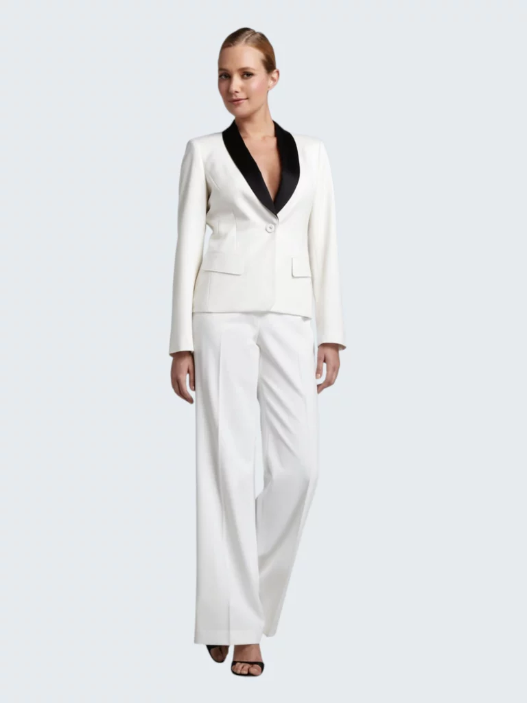Laat je inspireren door verschillende trouwpakken voor de bruid in diverse kleuren, pasvormen en stijlen, van tijdloos elegant tot modern en uitgesproken. Stijlen die passen bij jouw persoonlijkheid en trouwdag. Elk trouwpak wordt volledig op maat gemaakt met een perfecte pasvorm.